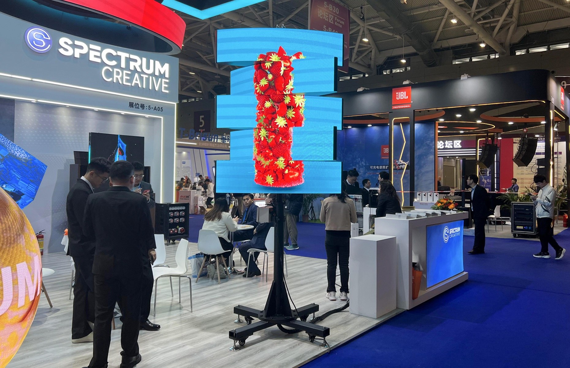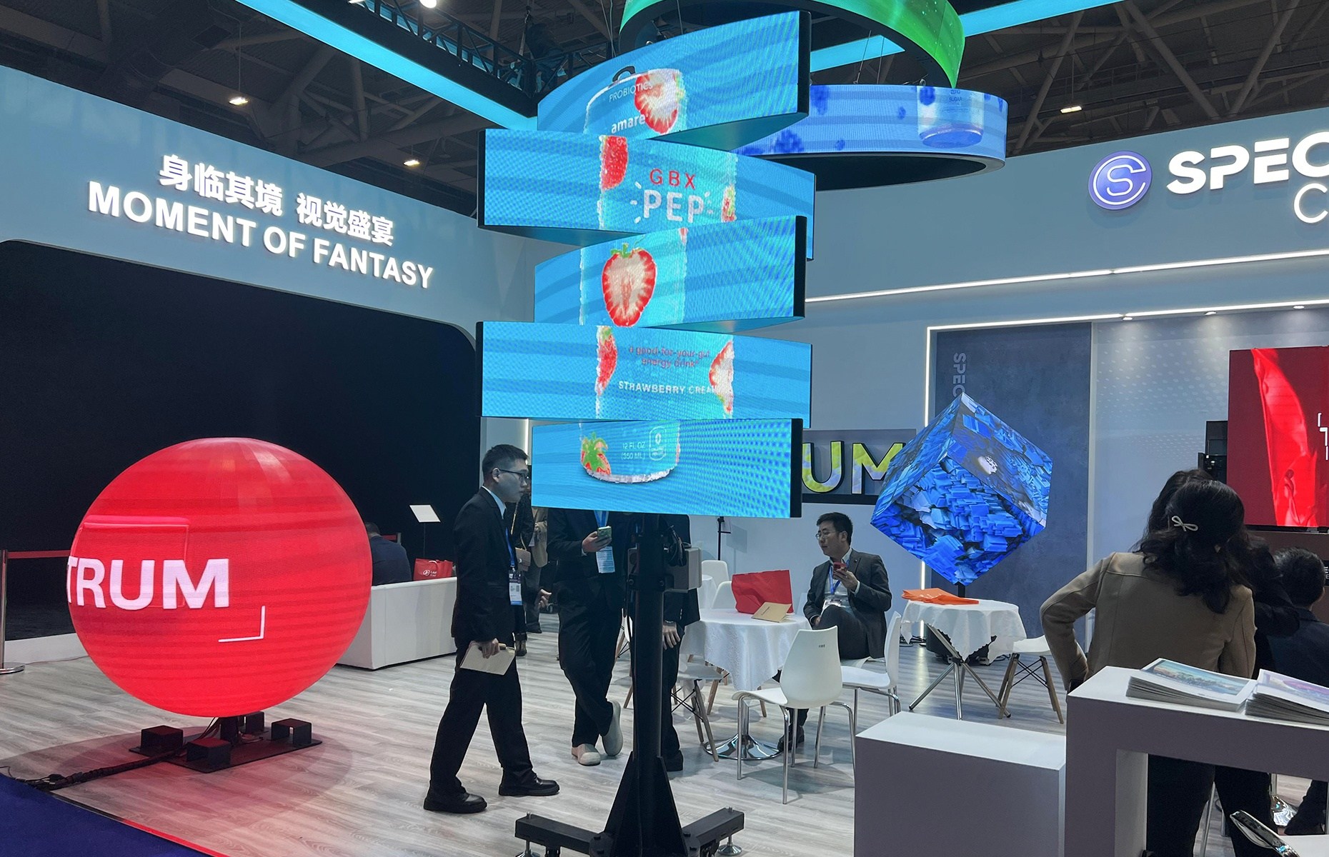 Spectrum Creative's double-sided rotating LED screen is a new display technology that subverts the traditional. Through synchronous control of LED position and luminous state, a full range of 360° graphics display is realized. Compared to traditional screens, this innovative structure has a simpler design, a lower cost, and a seamless viewing experience. It's eye-catching Digital Signage.